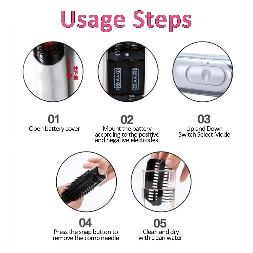 Цвет: молочно-белый Материал: АБС-металл, Размер: 21,5*4,6*4,1 см Вес нетто: 93 г Источник питания: 2 батареи (не входят в комплект) Характеристики продукта: линия волос, массаж, корень, Положение шестерни: низкая частота 2 шестерни s, Особенности: 1. Каждый раз, когда вы используете массажную расческу, вы будете чувствовать себя по-разному, уникально. Эффект тремора увеличивает кровообращение в коже головы, способствует метаболизму и делает волосы ярче. 2. Подкладка из натурального каучука и мягкая нейлоновая сталь для комфортного использования каждый раз. 3. Двухшаговый выбор интенсивности массажа для удовлетворения различных потребностей. 4. Простой дизайн переключателя крышки аккумулятора, удобный и практичный. 5. Улучшает кровообращение, помогает метаболизму. 6. Используйте две минуты в день, чтобы ускорить кровообращение, чтобы у волос было больше кислорода и питания. Примечание об использовании: 1. Установите две батареи при использовании, 2. Держите подальше от огня и держите массажер в сухости. 3. Пожалуйста, используйте этот продукт в соответствии с вашим личным телосложением. Не используйте его более 15 минут. 4. Не используйте этот продукт при возникновении аллергии или ран на коже головы или теле. 5. Не используйте фен.