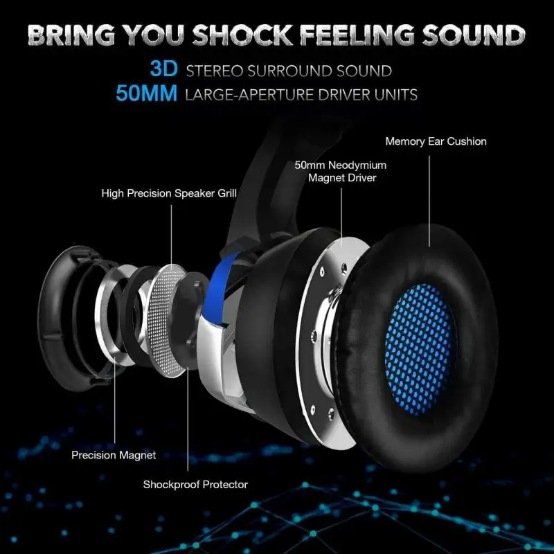 Реальная игровая гарнитура onikuma K5 обеспечивает максимальную четкость звука благодаря технологии объемного звучания 7,1! Просто возьмите свой игровой опыт на более высокий уровень! Гарнитура инновационная в форме и дышащий материал для игры-комфорт на всю ночь! Мягкие, эргономичные амбушюры толще и больше, чтобы изолировать Окружающий шум.
