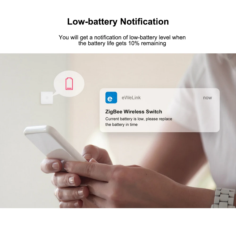 * Уведомление о низком заряде батареи: Вы получите уведомление о низком уровне заряда батареи, когда срок службы батареи останется на 10%.