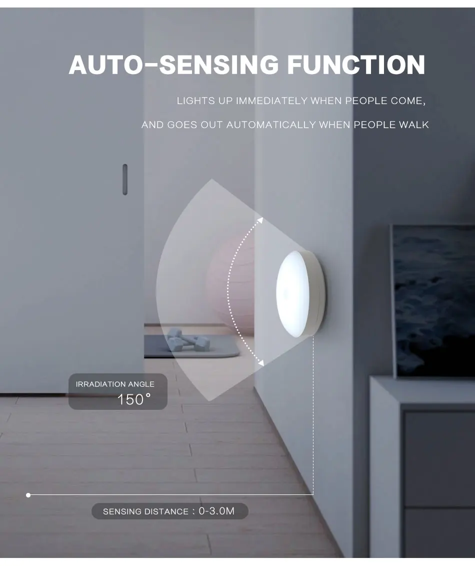 Авто: светильник автоматически включается только в том случае, если motion или тепло тела обнаружен в темных местах и светильник автоматически выключается автоматически никаких действий в течение 20 секунд.
