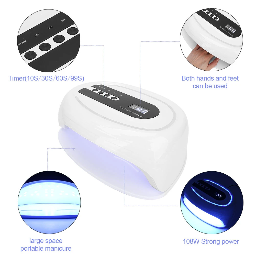 108 ВТ высокомощная лампа для ногтей, быстрое и эффективное лечение различных видов гелей для ногтей