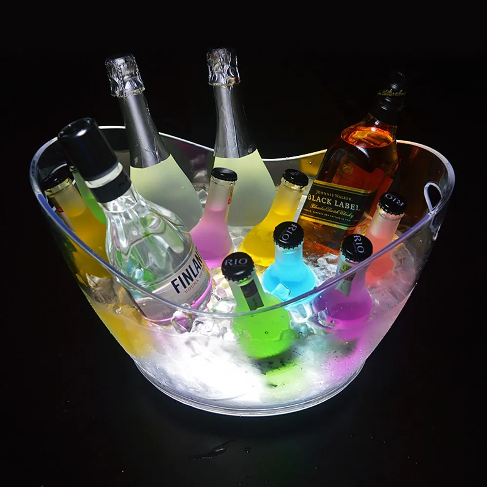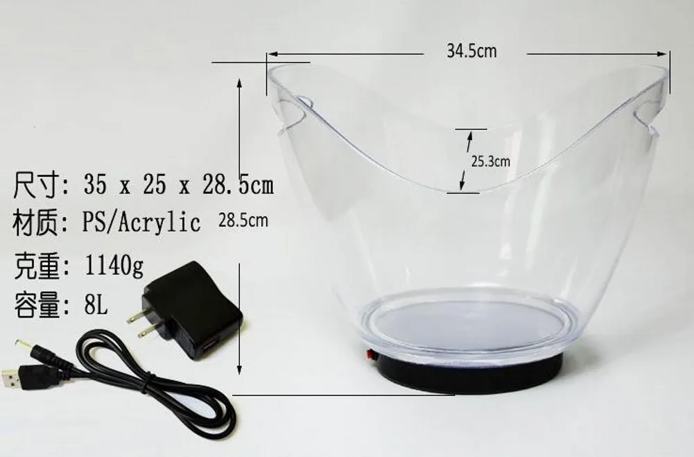 8L LED Ice Buckets Acrylic Luminous Barrel Rechargeable Luminous ICE Bucket Champagne Beer Ice Bucket