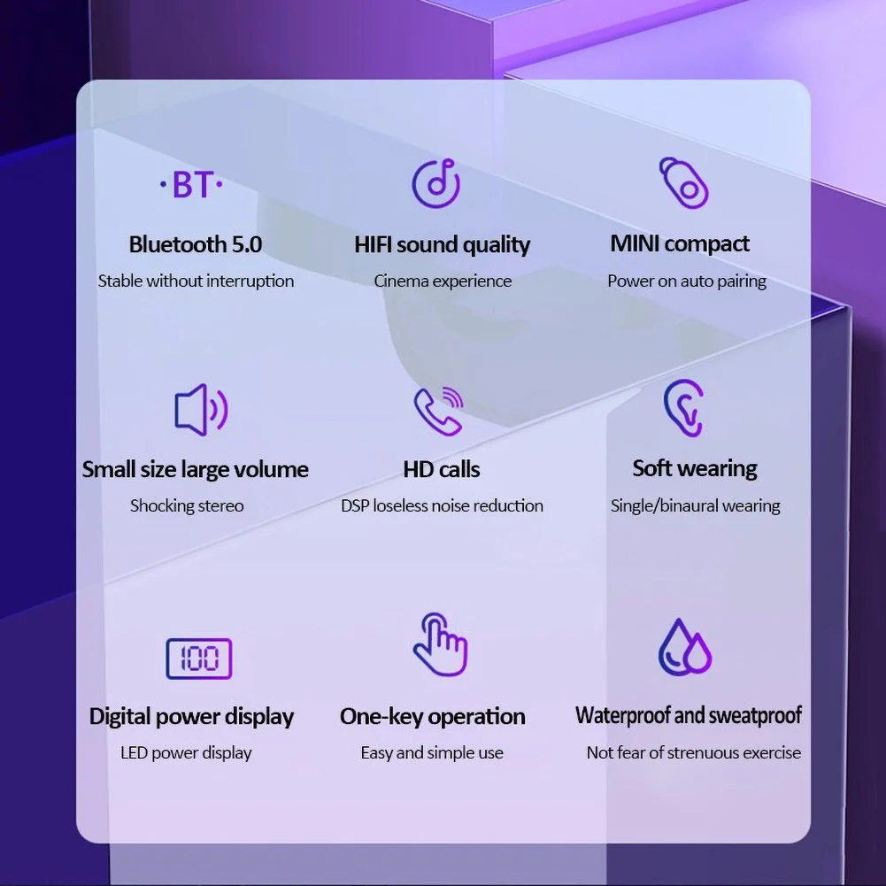Особенности: Bluetooth 5,0, беспроводной, наушники-вкладыши, громкая связь, светодиодный цифровой дисплей