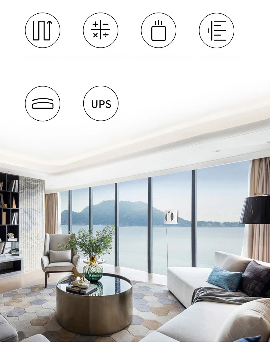 Интеллектуальное планирование пути. Можно избежать препятствий. Можно спроектировать маршруты. Можно автоматически вернуть. Большое всасывание с преобразованием частоты. Выдерживает вертикальное натяжение 7 кг. Технология защиты от падения для UPS после отключения питания. Скакалка для альпинизма может мгновенно нести 120 кг тяжести.