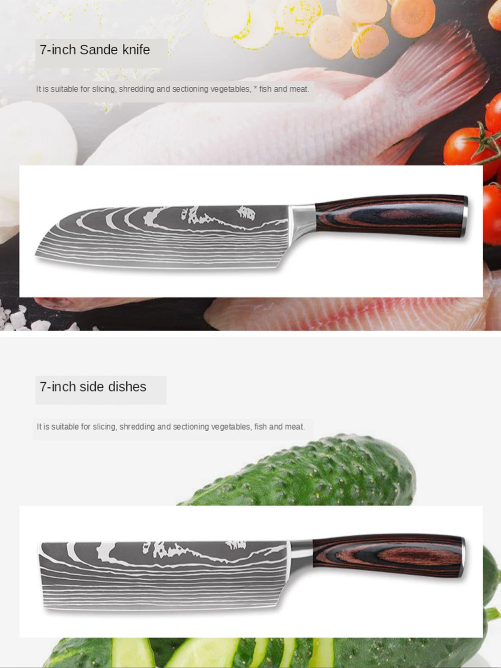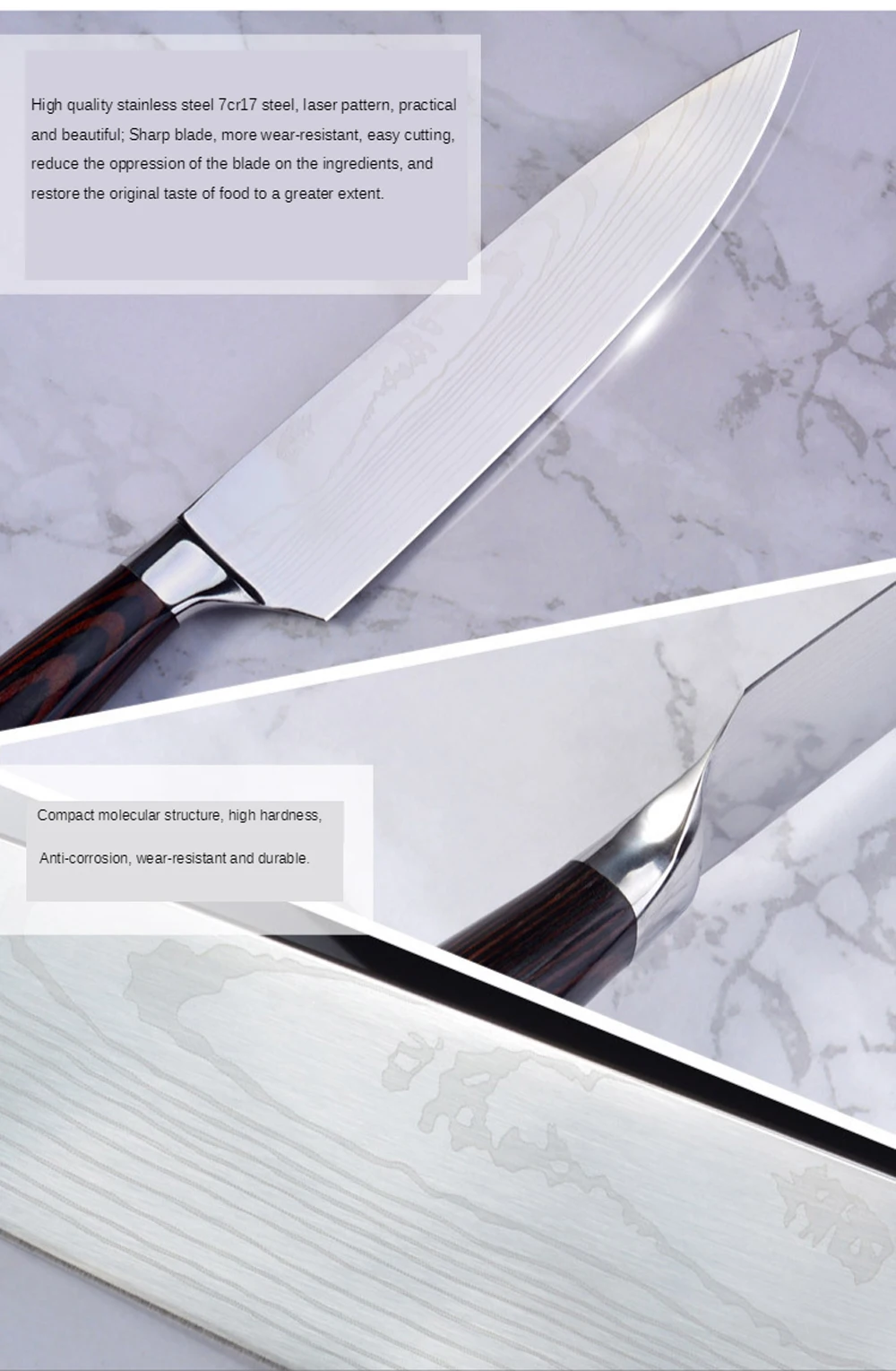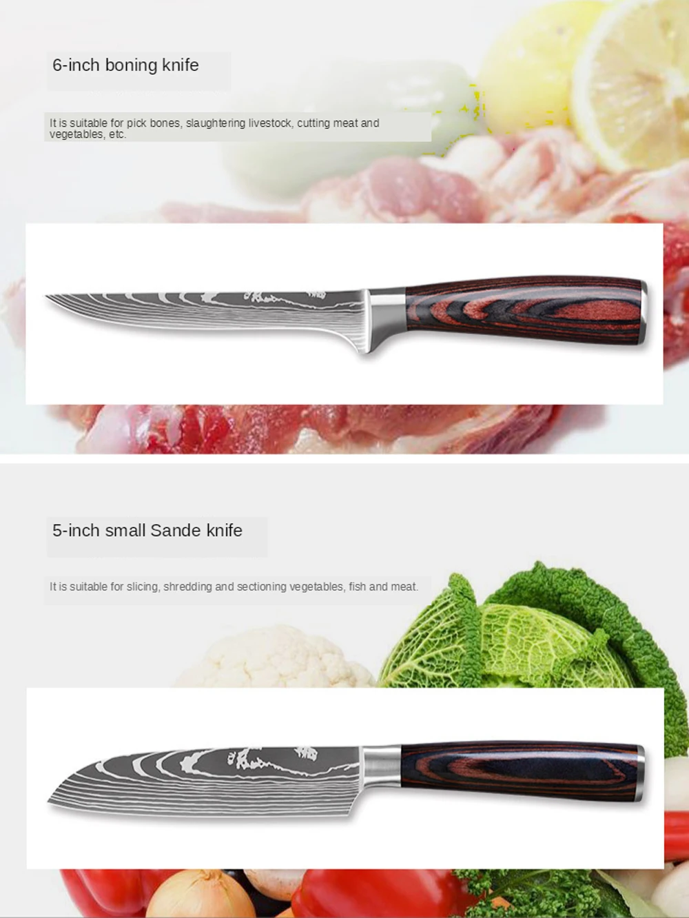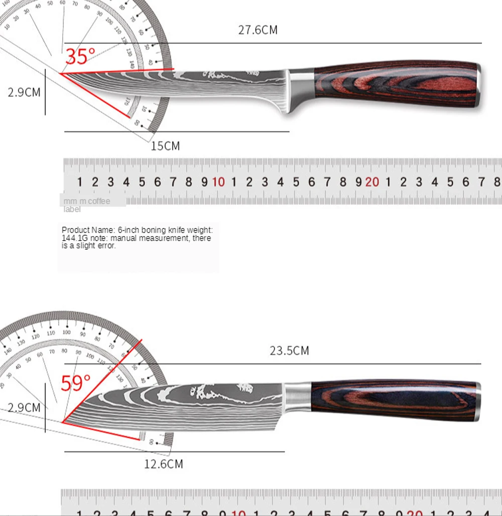 Японский кухонный нож шеф-повара 7CR17 440C, нож сантоку из высокоуглеродистой нержавеющей стали для рисования в дамасском стиле, набор мясников Gyuto