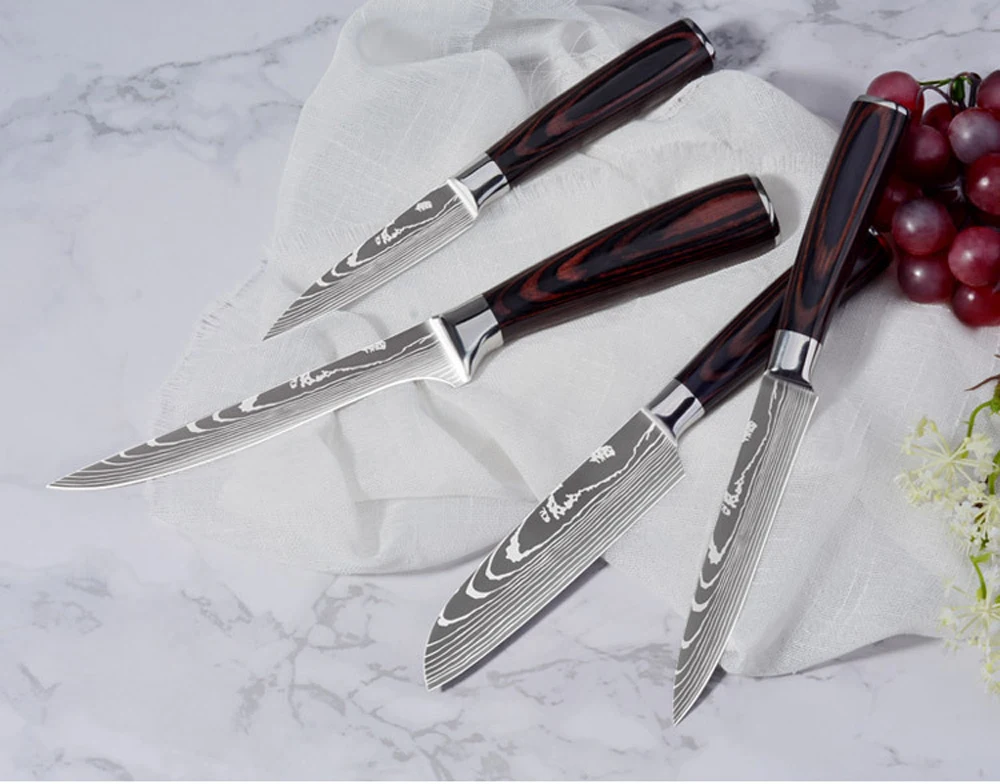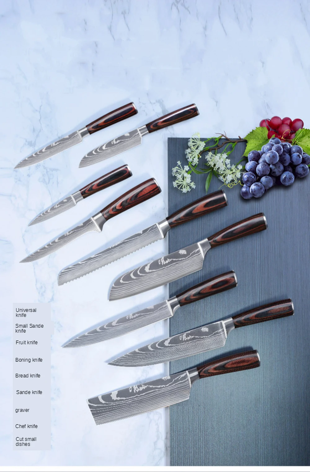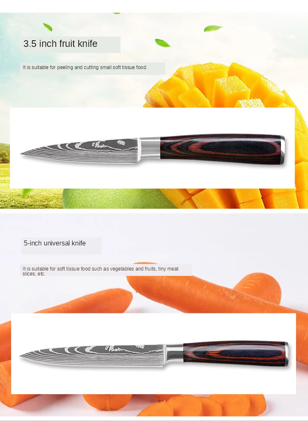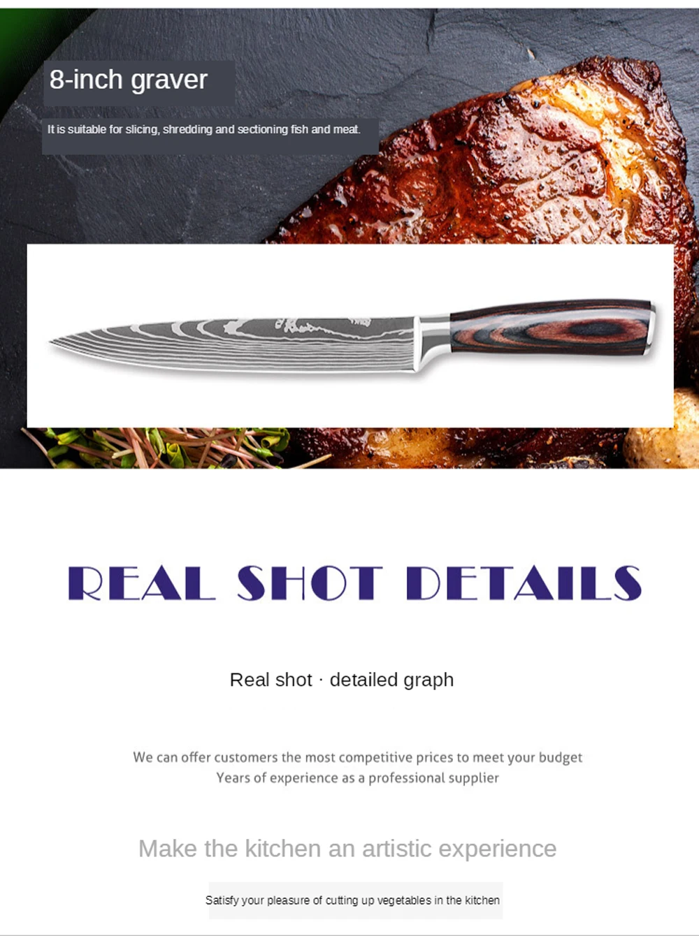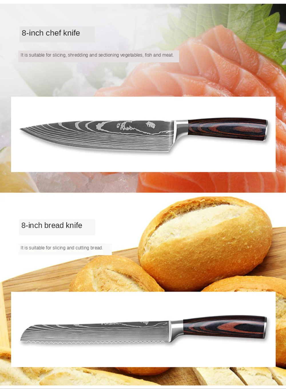 Японский кухонный нож шеф-повара 7CR17 440C, нож сантоку из высокоуглеродистой нержавеющей стали для рисования в дамасском стиле, набор мясников Gyuto