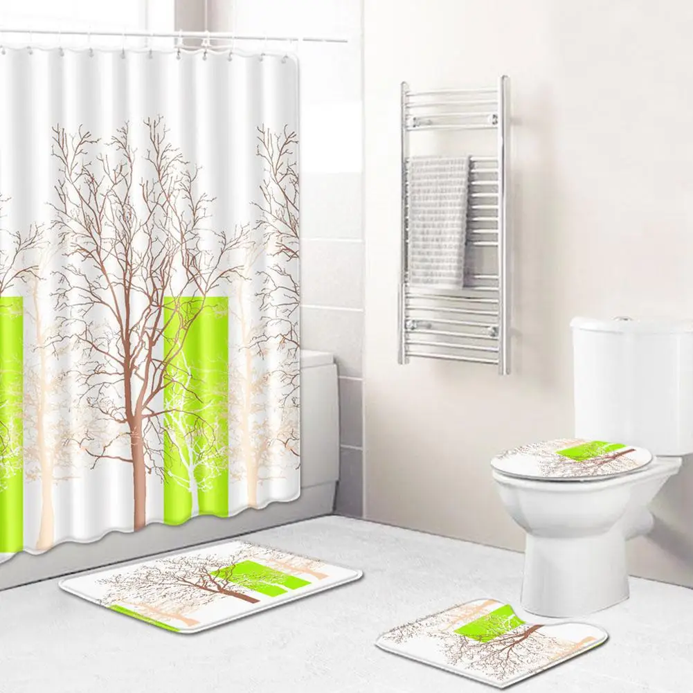 1 * занавеска для душа + 1 * напольный коврик + 1 * чехол для унитаза + 1 * Набор подушек для ног