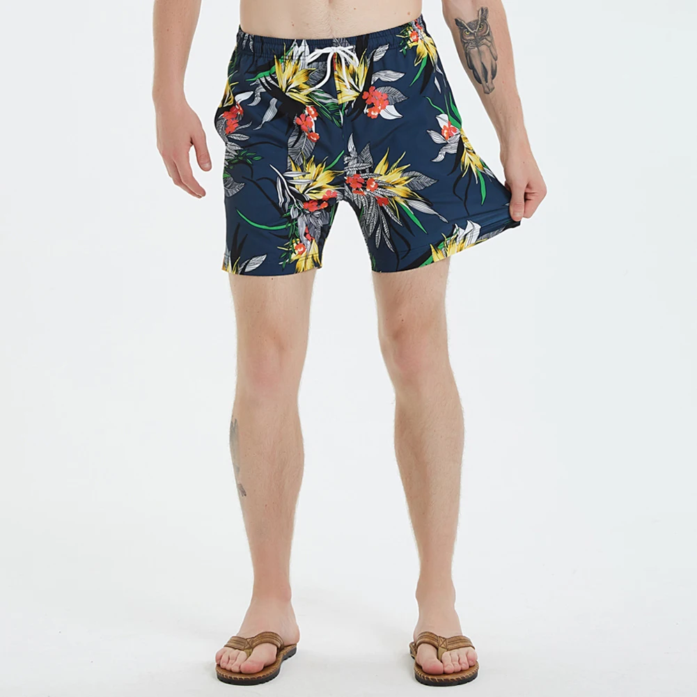 Летние цветочные листья мужские шорты быстросохнущие шнурки карманные пляжные плавки