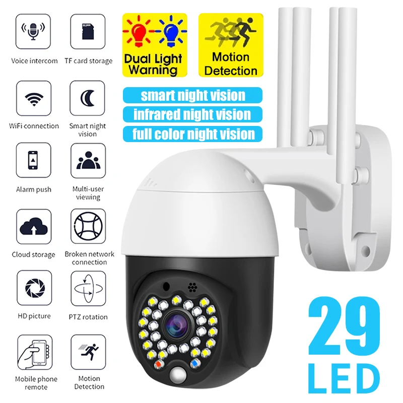 Двойной светильник 29 светильник s двойная антенна интеллектуальное автоматическое оповещение о отслеживании красный и синий светильник s звук и светильник сигнализация 2 миллиона полный цвет ночное видение купольная камера с wifi (EU)