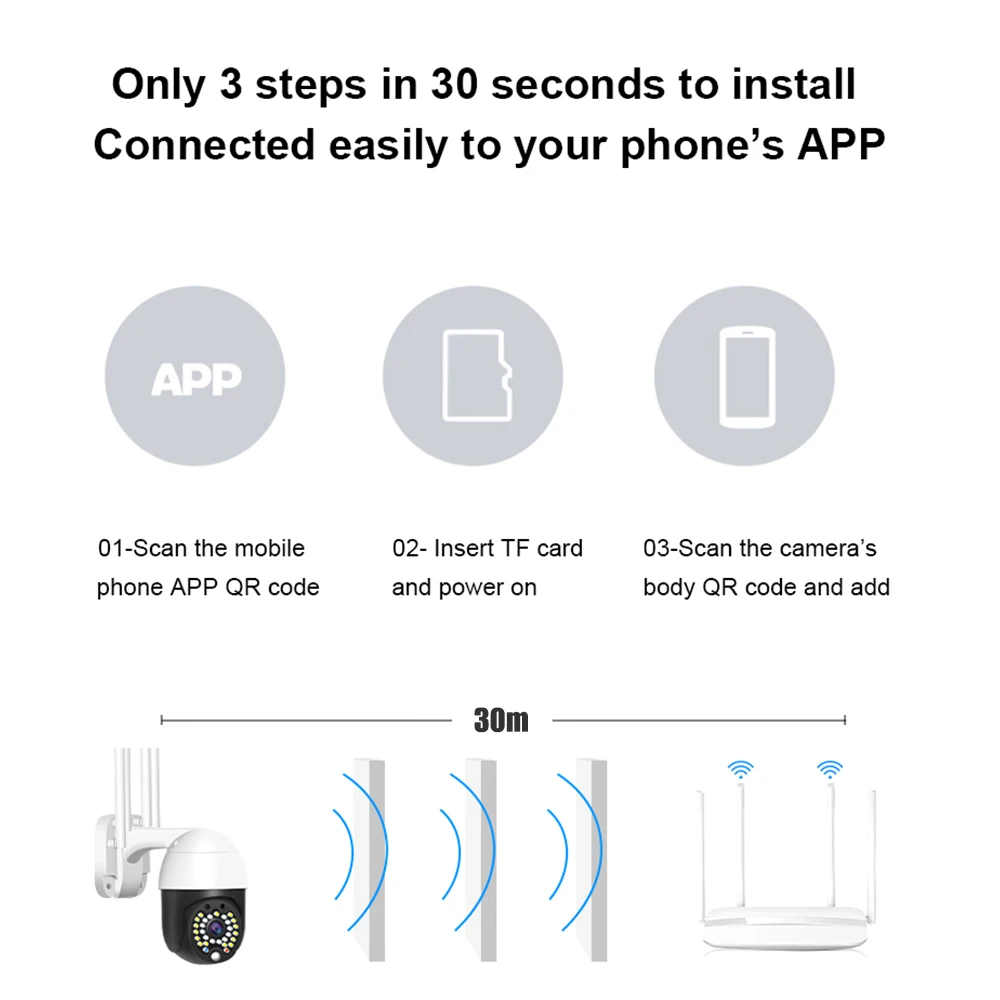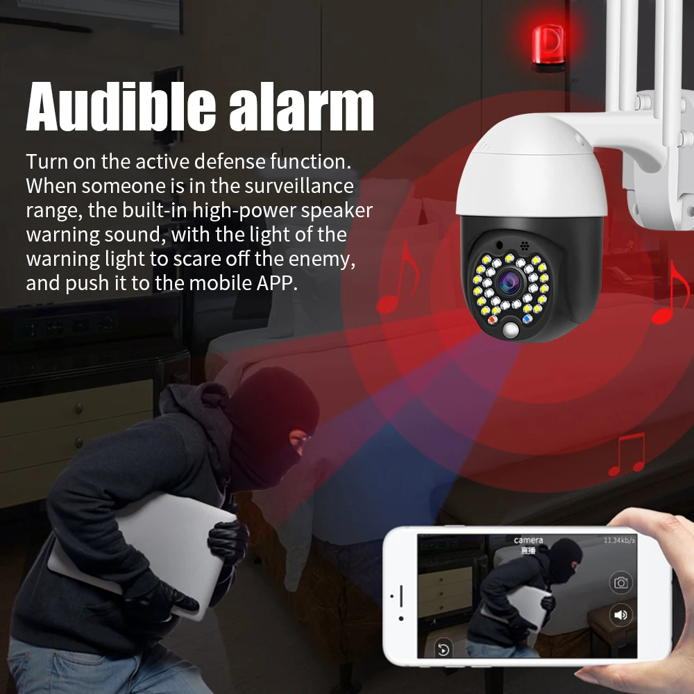 1. Инфракрасное Ночное Видение: Переключение на режим «обычного инфракрасного ночного видения», 12 инфракрасных ламп камеры работают, экран наблюдения черно-белый и цветной экран в течение дня 2. Полноцветное ночное видение: Переключение на режим «полноцветное ночное видение», камера работает с 18 белыми огнями, изображение наблюдения полноцветное, изображение реальное, И это может удерживать воров, и Дневной эффект-это цвет 3. Интеллектуальное ночное видение: Переключение в режим «умное ночное видение», камера по умолчанию «нормальное ночное видение», когда кто-то проходит, запускает функцию обнаружения движения камеры, включен белый светильник, инфракрасный светильник немедленно отключается в режим "full color" ночного видения ", Выключите в течение 3 минут и переключитесь назад к нормальному ночному видению, эффект окрашивается в течение дня Обнаружение движения: Поддержка Будильник: обнаружение движения (когда кто-то пройдет, красный и синий светильник включится, и звуковой сигнал будет звучать, пугая вора и привлекая внимание) Аудио монитор: Встроенный пикап Двусторонняя Интерком: Поддержка голосового домофона Хранение: Поддержка карты памяти 8-128G (не входит в комплект)/Поддержка облачного хранилища Скорость вращения: по горизонтали 0 ° ~ 320 °/по вертикали 0 ° ~ 40 °/С Эффект ночного видения: инфракрасное ночное видение, полноцветное ночное видение, интеллектуальное ночное видение Сетевой интерфейс: адаптивный порт Ethernet Рабочая температура: -40 ℃ ~ 70 ℃