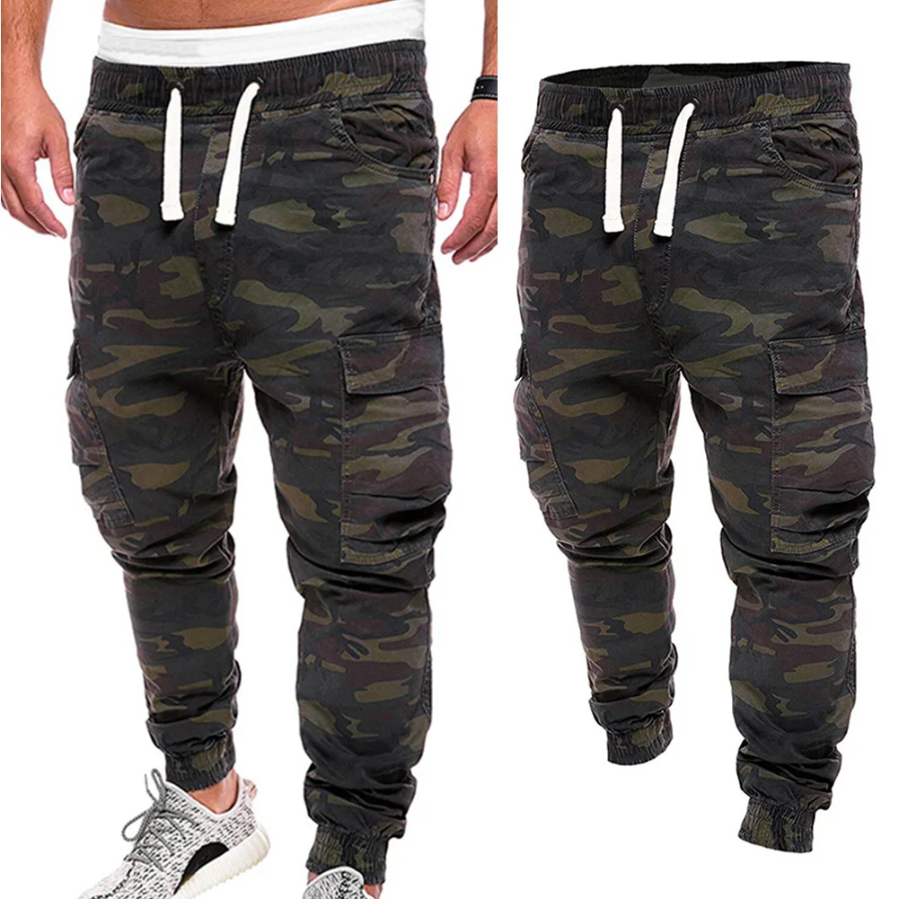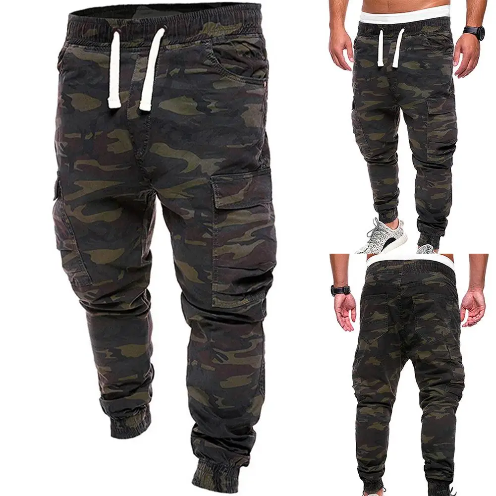 Мужские брюки с камуфляжным принтом размера плюс, брюки карго с несколькими карманами, брюки для бега трусцой