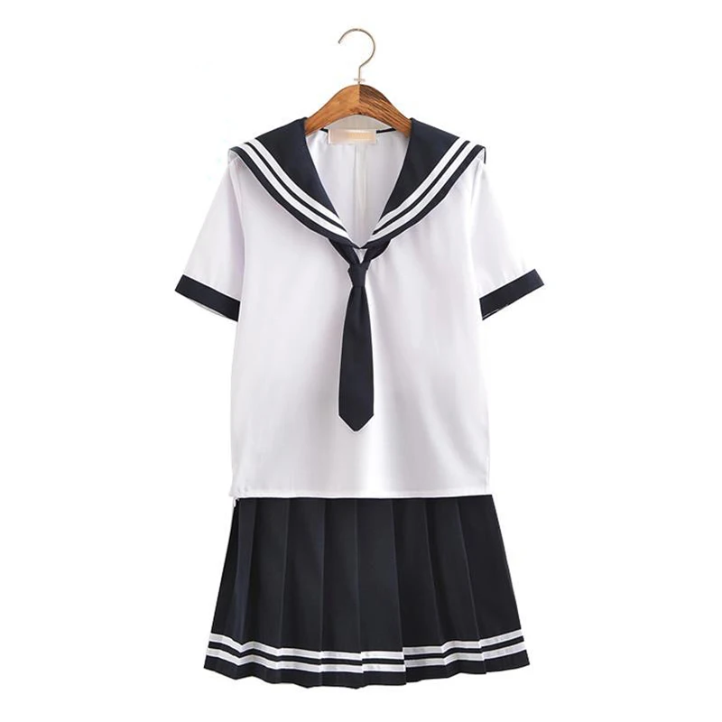 2 предмета, Высококачественная форма JK для девочек, японский корейский топ + юбка + галстук, школьная одежда, школьная форма, черный и белый костюм моряка C30153AD