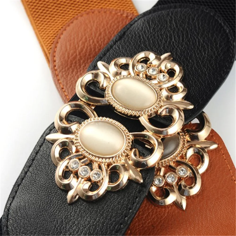 Женский широкий пояс со стразами, винтажный эластичный пояс-корсет с пряжкой
