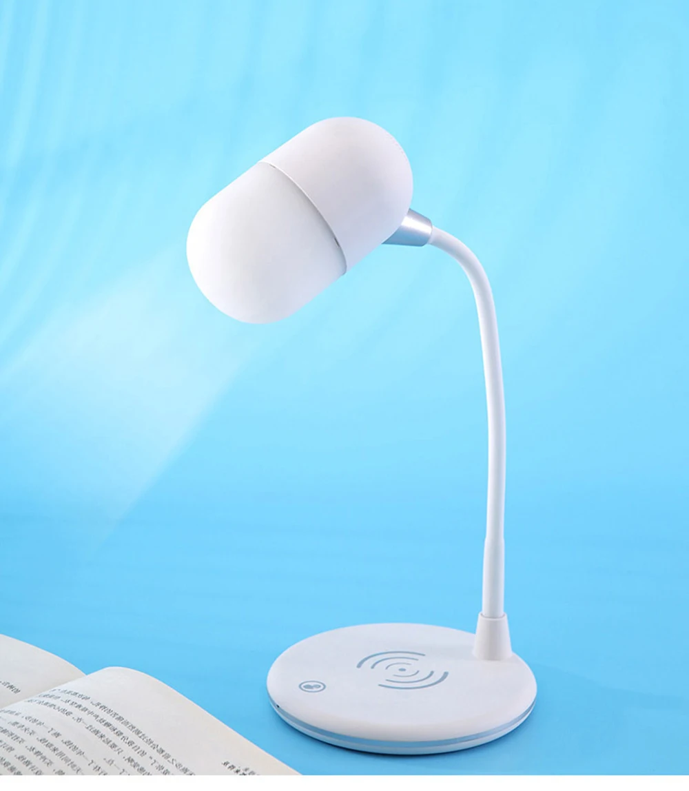 QI Беспроводной зарядная настольная лампа Bluetooth Динамик Портативный светодиодный гибкий ночной Светильник Спальня защита глаз простой Карамельный цвет