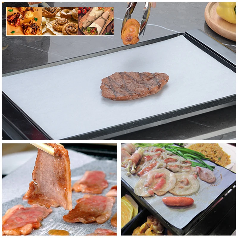Предварительно вырезанный пергамент-30x40 см Предварительно вырезанный натуральный пергамент сверху, антипригарное покрытие. Легче использовать за пределами, пергамент отскакивает, предотвращает износ, экономя ваше время.