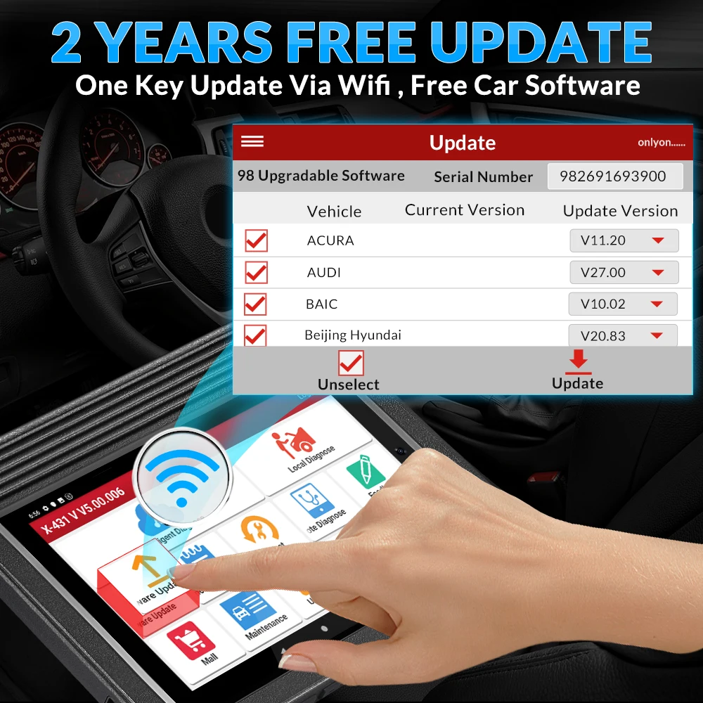 3. X431 v основан на системе Android через WIFI и Bluetooth
