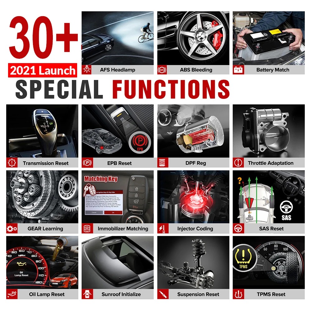 LAUNH X431 V поддерживает более 30 видов специальных функций сброса: