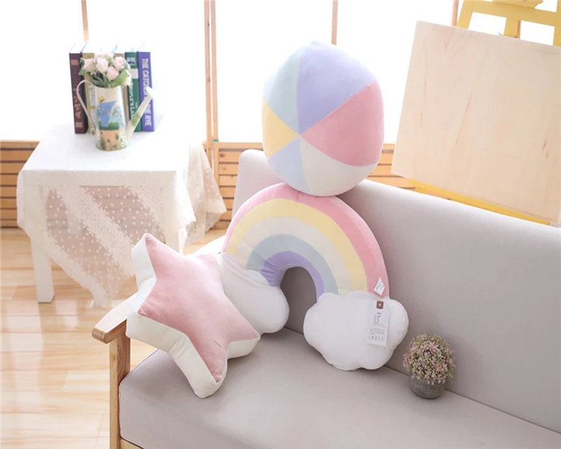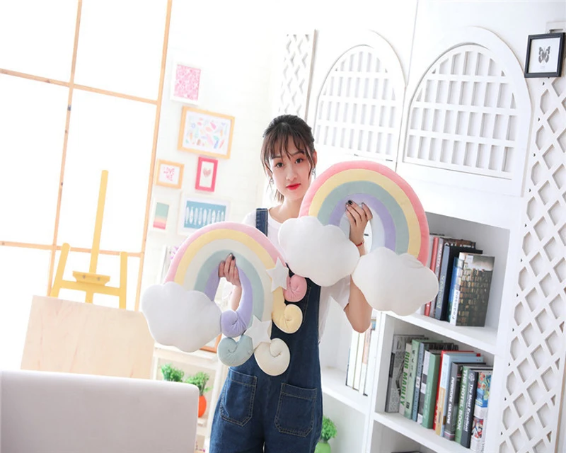 Описание товара: Состояние: 100% новые и высококачественные Материал: мягкий плюш и полипропиленовый хлопок Размер: Радуга-50x38 см Облако -- 53x40 см Метеор-55х30см Оболочка -- 45х35см Звезда -- 36х36см Луна -- 45х20см Высота-30x20 см Шар -- 35х35см Посылка: 1 штука в одном opp пакете. Примечание: обычно допускается погрешность в 1-2 см, цвет может немного отличаться из-за монитора