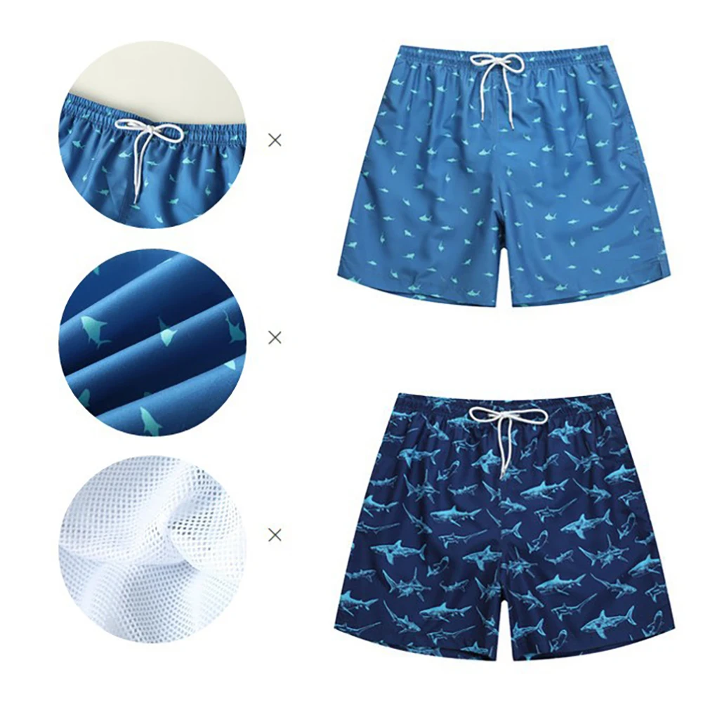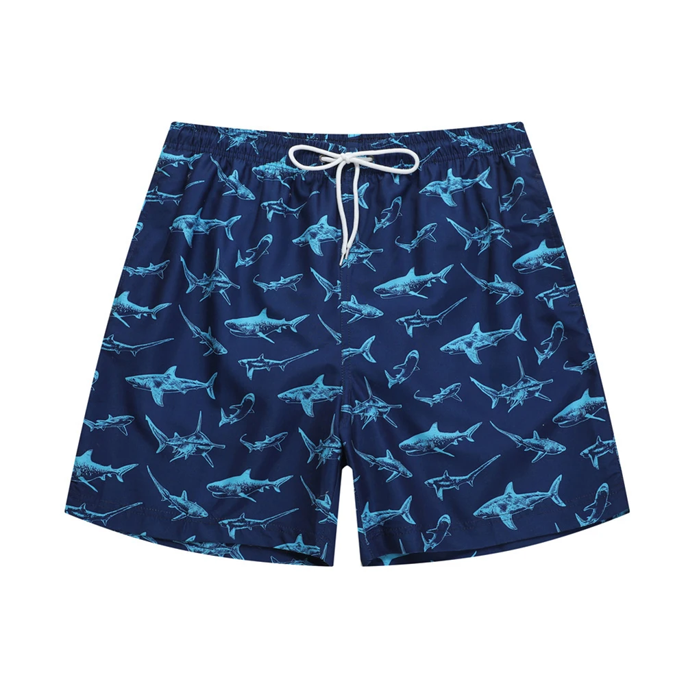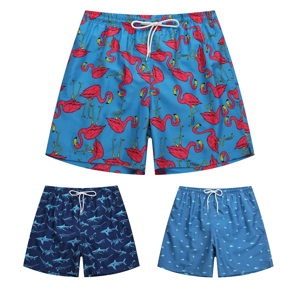 Летние мужские шорты с изображением фламинго акулы, быстросохнущие спортивные пляжные плавки с завязками