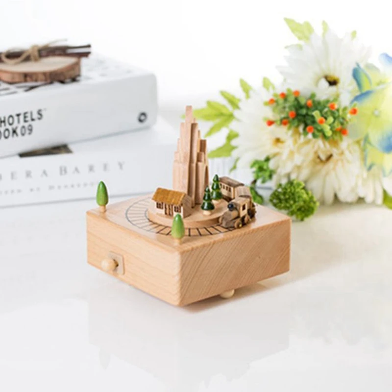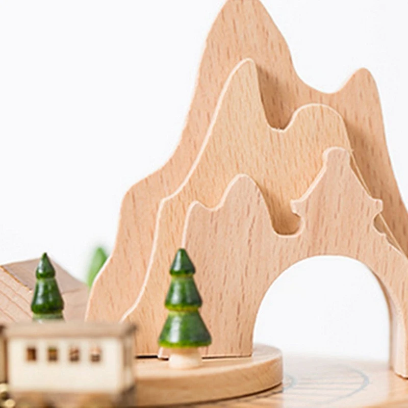 TRADITIONAL YET CONTEMPORARY DESIGN - The classic mountain tunnel design was coming from the base of physical dynamics and nets. Makes the wooden music box run in different fun movements including 360 degrees rotation along with small netic cars and trains.