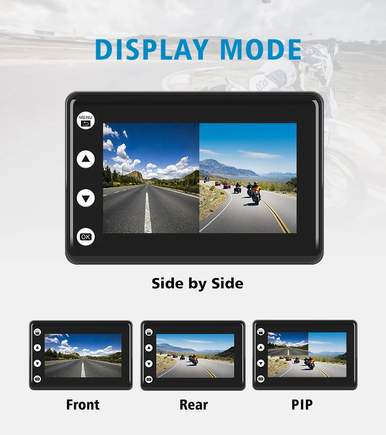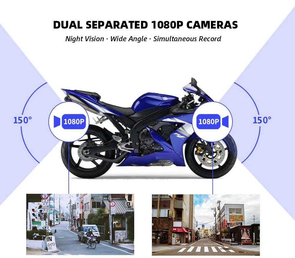 2 раздельные камеры с каждым стандартным 2,0-метровым удлинительным кабелем для записи спереди и сзади. Один на передней и другой на задней части вашего велосипеда, который будет записывать все, что происходит перед вами и за вами все время. Идеально подходит для мотоциклов, скутеров, автомобилей, UTV, ATV и любых других транспортных средств.