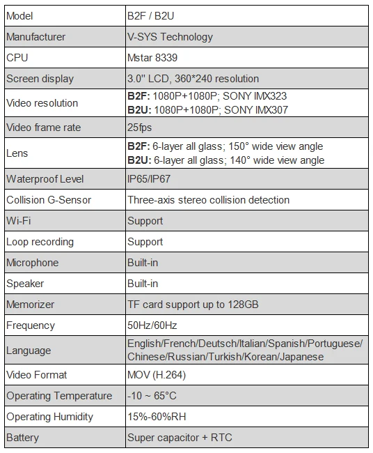 ● B2F оснащен CMOS-датчиком SONY IMX323 и 6-слойным стеклом, широкоугольным объективом 140 °.