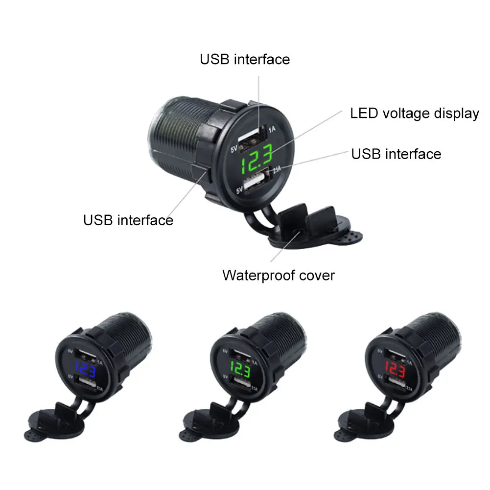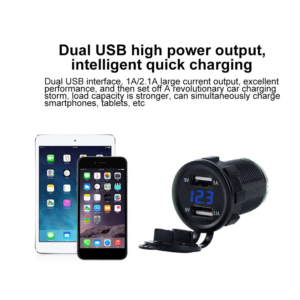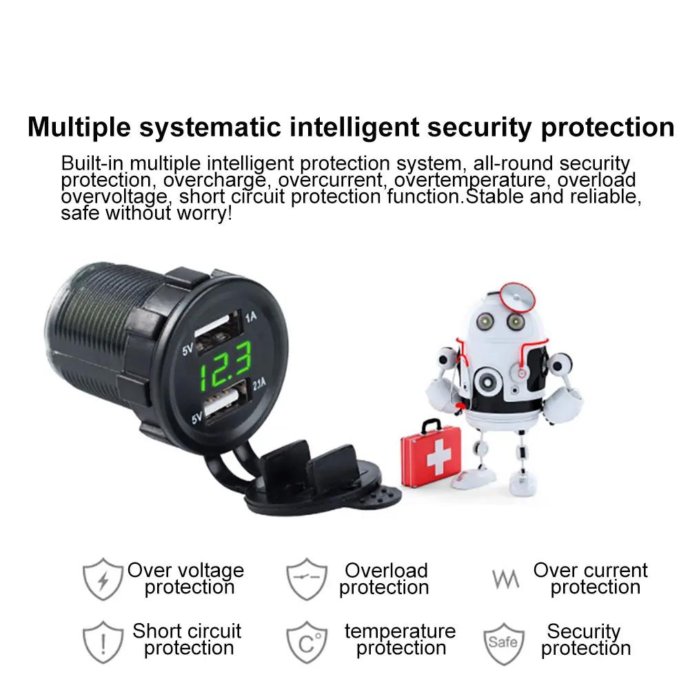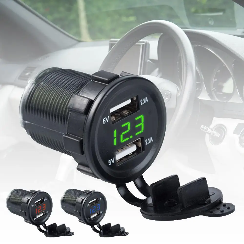 Автомобильное зарядное устройство для лодки мотоцикла 4,2 а с двумя USB-портами и цифровым дисплеем напряжения