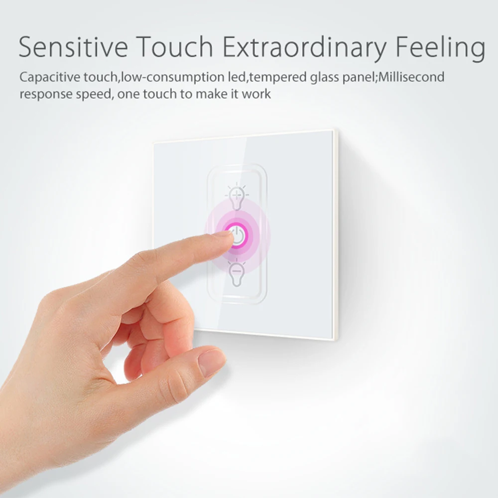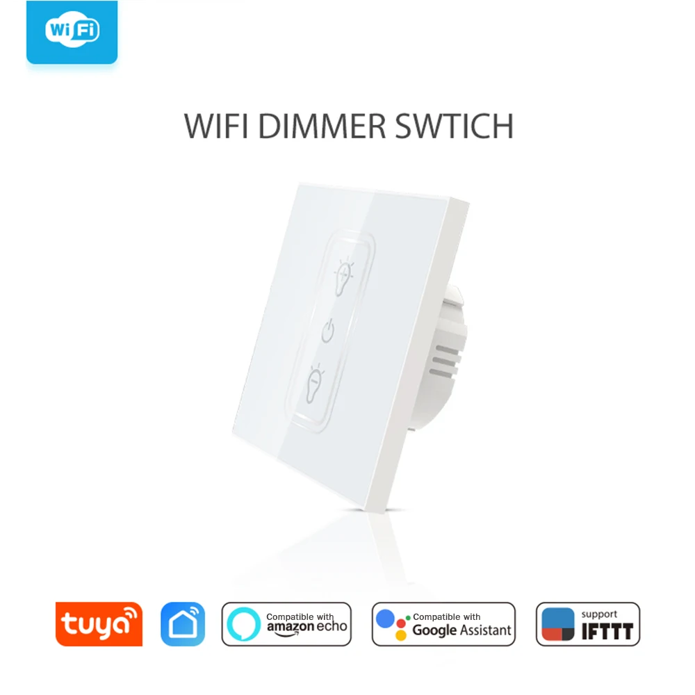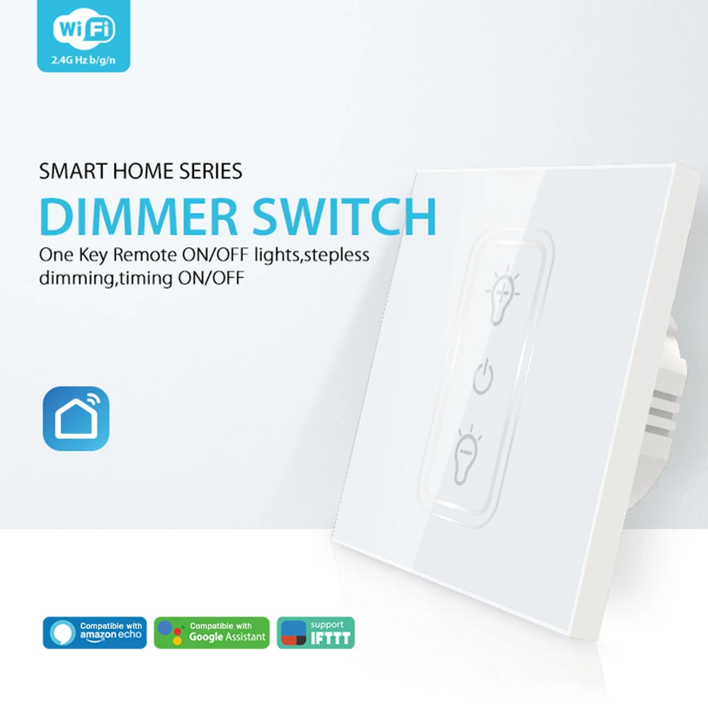 Интеллектуальная беспроводная (Wi-Fi) ЕС диммер для интеллигентая (ый) сроки переключатель и регулировать интенсивность освещения, в котором есть 2,4 ГГц Wi-Fi с помощью одной кнопки подключения, прост в установке, не нужен домашний шлюз, вы можете легко достичь интеллектуального управления бытовой техникой.