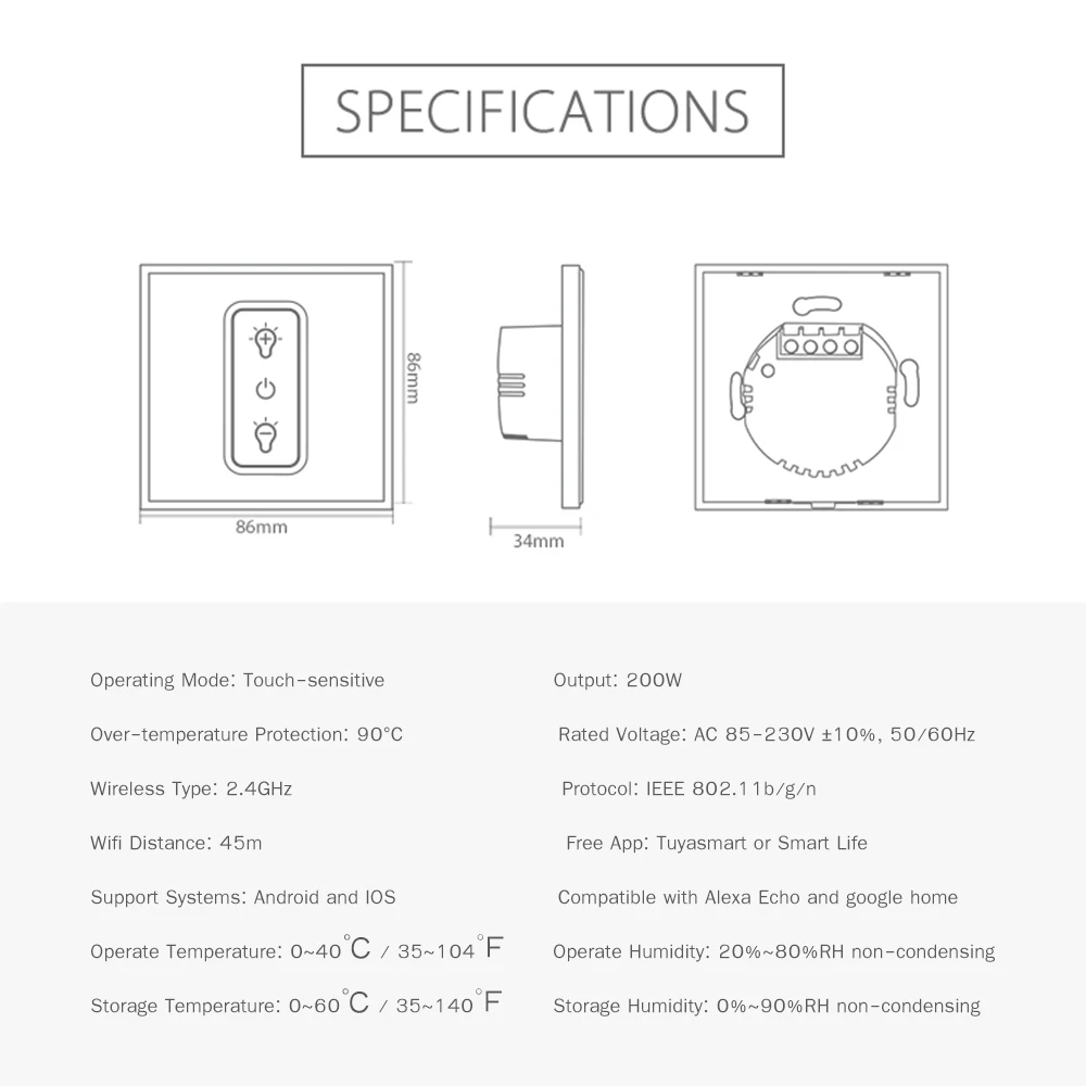 Простота установки: smart wifi диммер, с помощью одной кнопки, не нужно поработать с бытовыми стерео-и шлюз, 2,4 ГГц протокол более стабильна, быстрее и удобно.