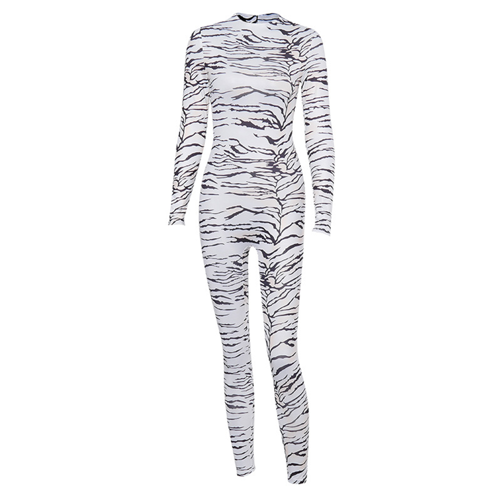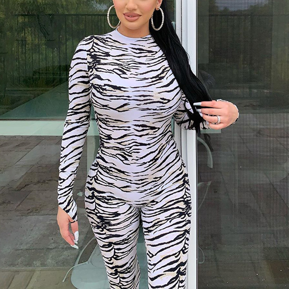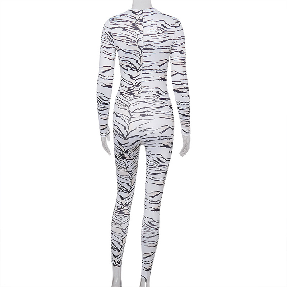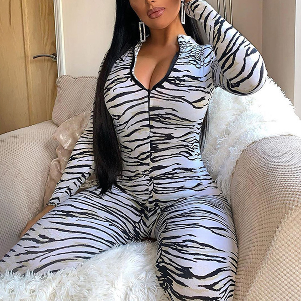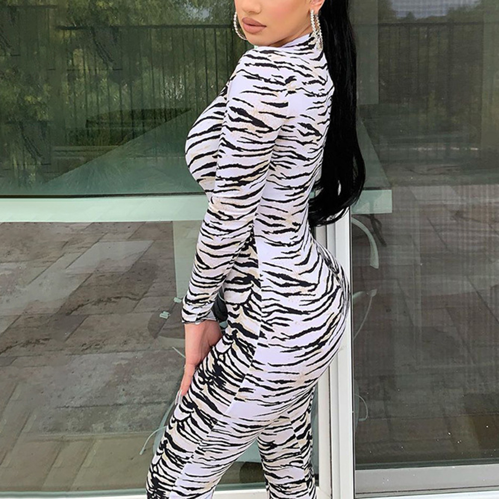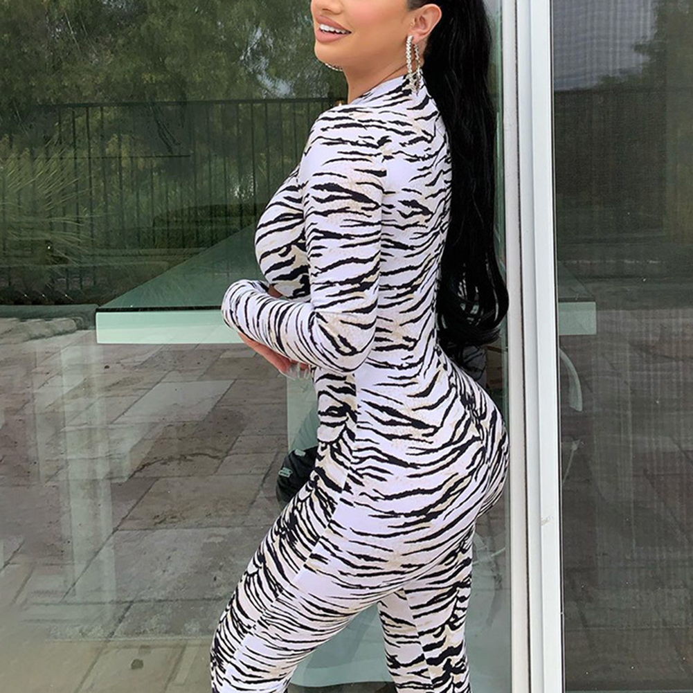 Женские облегающие комбинезоны с принтом зебры и длинным рукавом, летние модные уличные комбинезоны наряд на молнии, спортивная одежда