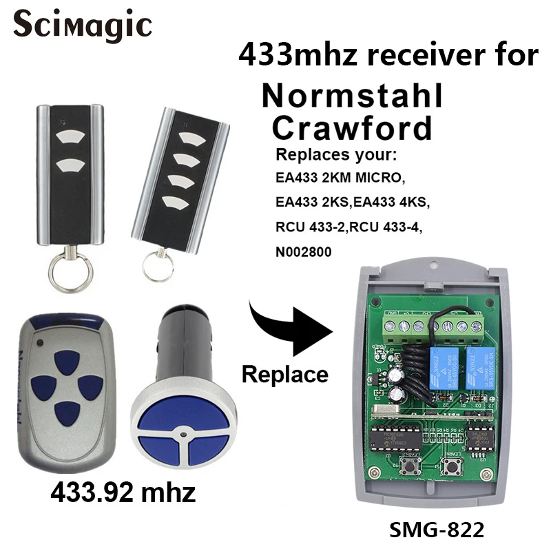 1. Автоматический барьер 2. Гаражные ворота 3. Электронные ворота 4. Электроприборы/Автоматизация дома, т. Е. Освещение Простой в использовании, 2 канальный приемник система позволяет контролировать ваши ворота, барьер, дома и двери гаража Количество каналов: 2 Частота приема: 433,92 МГц Рабочая температура:-40 ℃- + 80 ℃ Источник питания: 12-24 В постоянного тока Встроенная антенна: диапазон приема 70-100 м Один приемник может работать со 100 кодами