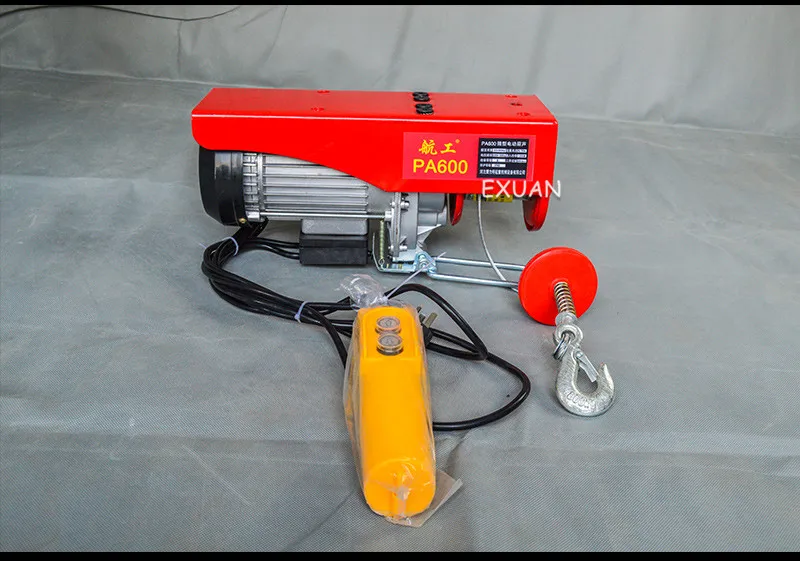 Название продукта: Мини электрическая лебедка Модель: PA600 Стандарт стальной проволоки: 30 м Одиночный Крюк: 200 кг Двойной Крючок: 400 кг Одна веревка: 10 м/мин Двойная веревка: 5 м/мин Мощность: 1400 Вт Постоянной ёмкости, универсальный конденсатор: 40 мкФ Время: 1-2 часа