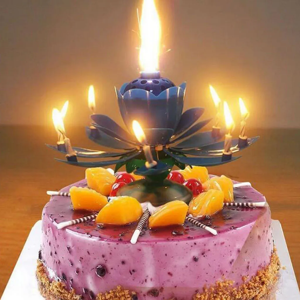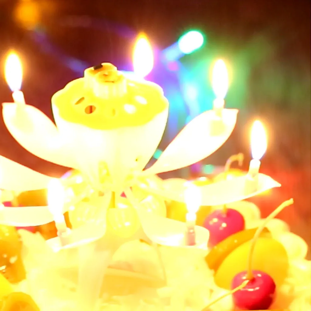 Музыкальная свеча с двойным цветком Цветы день рождения торт плоский вращающийся электронный