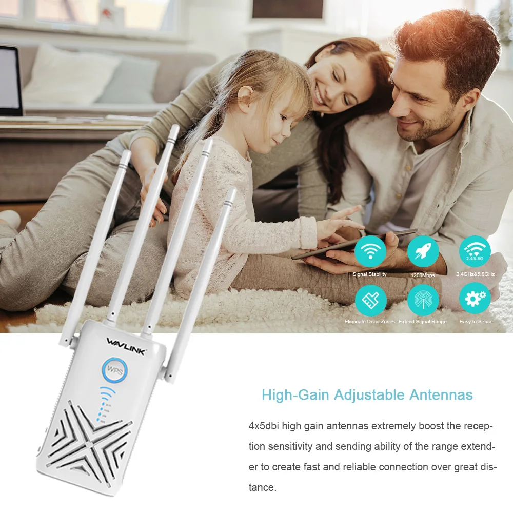 【Strong & Stable Signal】 --- этот 1200Mps WIFI удлинитель имеет двухдиапазонную технологию, одновременно выдает два WIFI независимо, для достижения полномасштабного беспроводного сильного и стабильного расширения WIFI. 5 ГГц (867 Мбит/с) WIFI подходит для высокоскоростной передачи на короткие расстояния, для видео/игр высокой четкости. И 2,4 ГГц (300 Мбит/с) Wi-Fi подходит для передачи на средних и больших расстояниях, для основного просмотра сети.