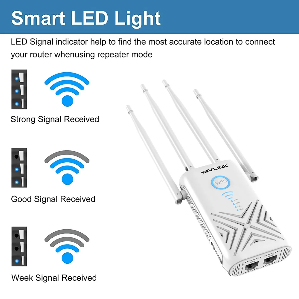 【Спокойный покупатель 】 --- специальные светодиодные сигнальные индикаторы помогают найти лучшее местоположение вдали от маршрутизатора. Специально оснащен 4 внешними антеннами с высоким коэффициентом усиления для обеспечения более сильного сигнала Wi-Fi.