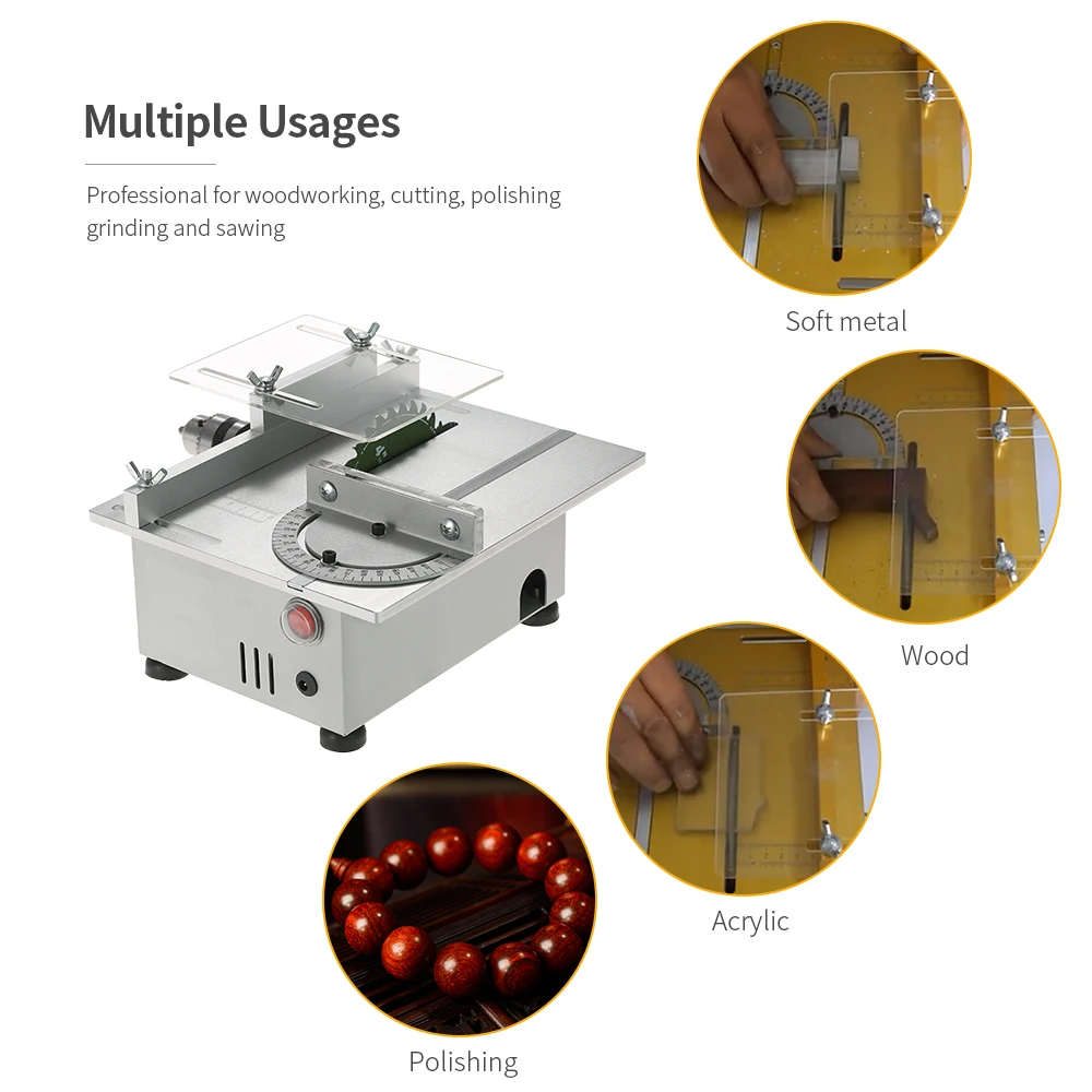 Эта миниатюрная Настольная пила DIY из алюминия с мощной скоростью является профессиональной для деревообработки, резки, полировки, шлифования и пиления. Это необходимая маленькая режущая машина для резки и шлифования дерева, пластика, акрила, мягкого металла и т. д.