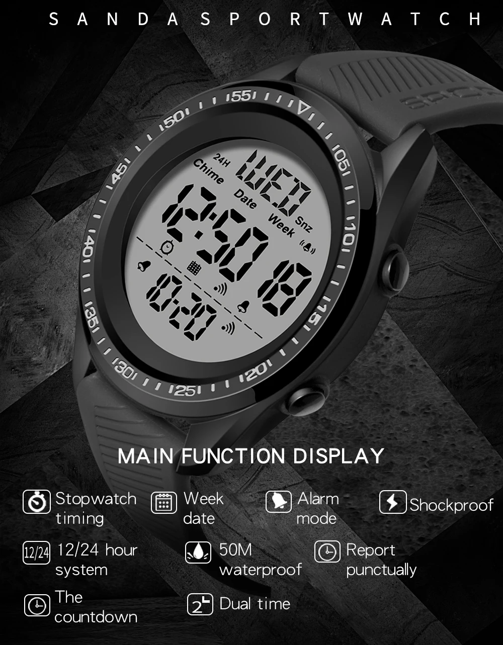 Специальные функции: термометр, световой, будильник, секундомер, календарь, 24-часовой индикацией, GMT, с двумя часовыми поясами, отображение дня недели, отображение месяца