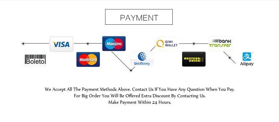 Уведомление покупателей В1: сколько времени потребуется, чтобы получить мой заказ после того, как я заплатил? A1: Время доставки зависит от способа доставки. Мы обычно отправляем товары в соответствии с выбранной Вами логистикой. Если ваш заказ превышает $10, и вы выбираете экономичную логистику, мы, как правило, поможем вам выбрать хорошую логистику. Когда заказ превышает $180 (больше чем $150 в США и некоторых странах), мы отправим вам курьера, если ваша страна поддерживает курьерскую доставку. В2: есть ли скидка на более крупные заказы? A2: Конечно, если сумма вашего заказа достаточно велика, вы можете связаться со мной, и мы можем обсудить дисконтирование вашего заказа. Долгосрочные клиенты также могут связаться со мной, я могу скорректировать скидку для вас. В3: каково качество продукта? Из какого материала? A3: большинство наших продуктов изготовлены из цинкового сплава, небольшая часть изготовлена из нержавеющей стали, и другие материалы отмечены в деталях продукта. Если вы хотите узнать больше о наших продуктах, вы всегда можете связаться со мной, и я могу ответить за вас. Есть проблема с качеством продукта. Мы поддерживаем повторный выпуск. В4: когда Вы осуществляете доставку? О4: после того как вы разместите заказ, мы отправим товар немедленно, если мы не в наличии, но отправим в течение 3 дней. Мы отдыхаем в воскресенье, и доставка будет в понедельник утром. В5: когда лучше купить ваши товары? A5: наше участие в каждой крупной акции-лучшее предложение для покупки в это время. Во-вторых, каждые выходные мы увеличим скидку каждые выходные, если вам нужно, вы можете купить товары в знаменитом. В6: есть ли у вас какие-либо новые продукты? A6: Да, мы запускаем новые продукты каждый день, вы можете нажать на «Producten», а затем нажать на «Nieuw», чтобы увидеть наши новые продукты, запущенные каждый день. Если вам нравятся наши новые продукты, пожалуйста, нажмите, чтобы купить.