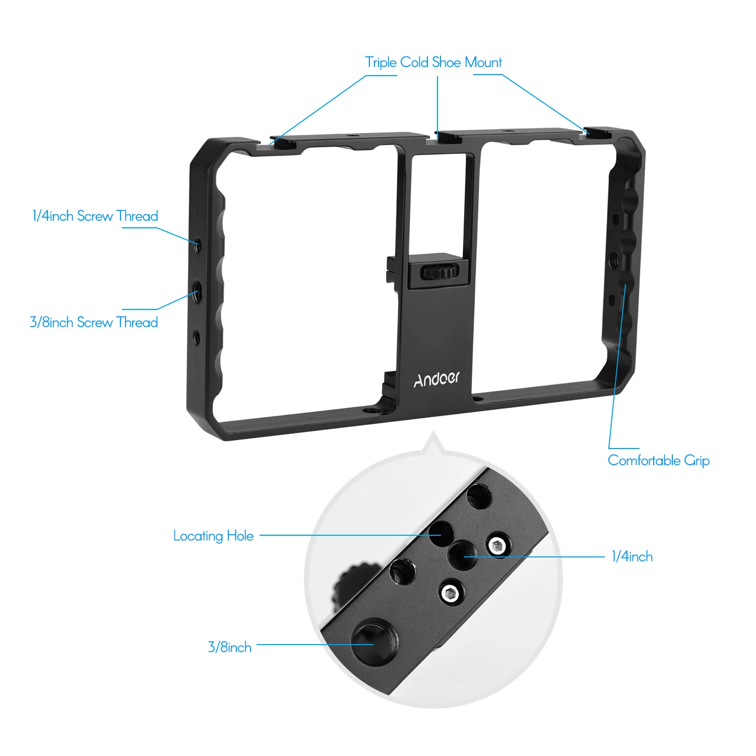 Твердые функциональная клетка:С тройным креплением для вспышки «Холодный башмак» и 1/4 дюйма, 3/8 дюйма резьбовыми отверстиями, более универсальна для Совместимость со штативом, светодиодный светильник и микрофон. Установка из алюминиевого сплава прочная и прочная для длительного использования.