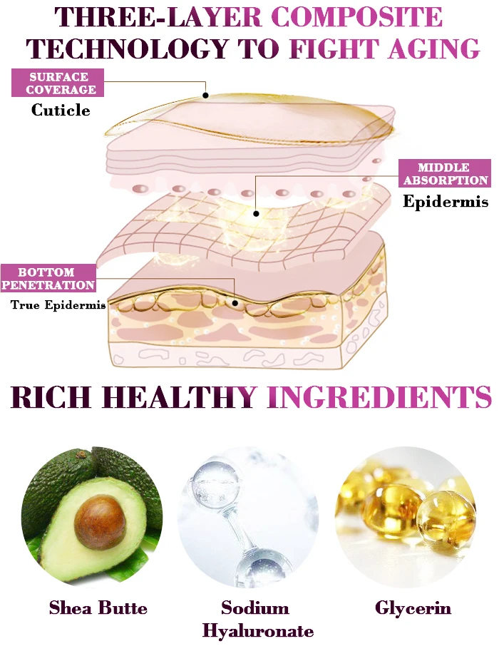 От растительной эссенции, богатой разнообразными питательными веществами, дают коже обильное увлажнение и питание, облегчают отсутствие воды, сушат кожу, помогает оздоравливать мышечную базу, придает коже шеи водный нежный блеск, восстанавливает тонкие линии, создает яркую и гладкую Молодую красивую шею.