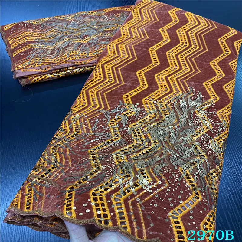 NIAI 2020 бархатная ткань с вышивкой кружева Оранжевый Элегантный красивый цветок Африканский нигерийский французский последние конструкции XY2970B-2