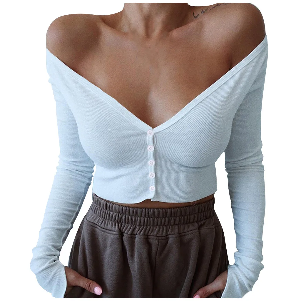 1. Особенности: повседневные короткие топы, длинный рукав, длинный рукав, v-образный вырез, повседневные топы, повседневная одежда, стильный и модный дизайн, Осенние повседневные топы.