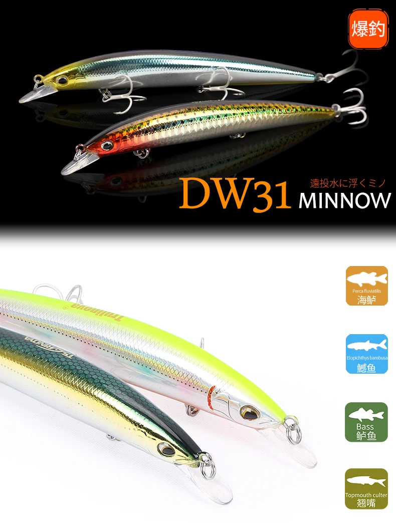 TSURINOYA DW31 Floating Minnow Jerkbait Hard Lure 129mm 14.8g 1m Depth Long Casting Lure Seabass Swimbait Wobblers Crankbait