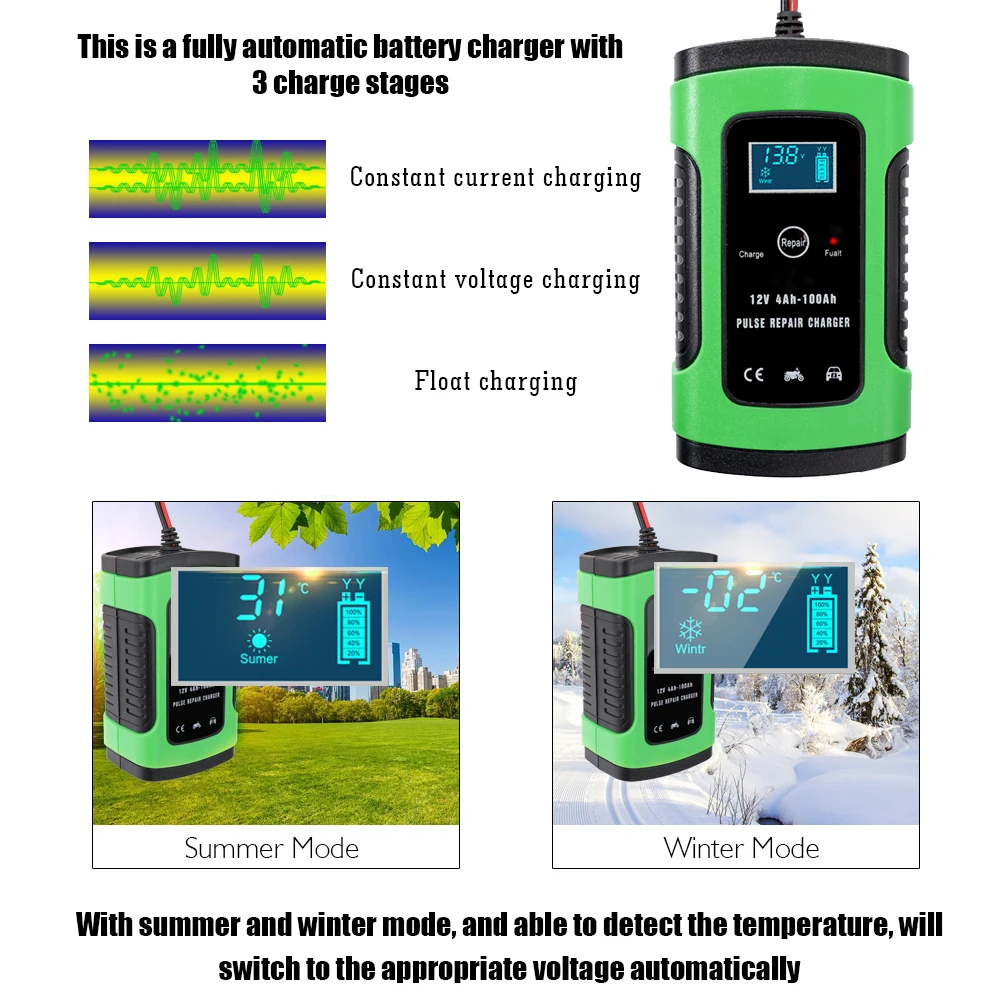 Режим полной зарядки: в летнем и зимнем режимах это полностью автоматическое зарядное устройство способно определить температуру и автоматически переключиться на соответствующее зарядное напряжение.