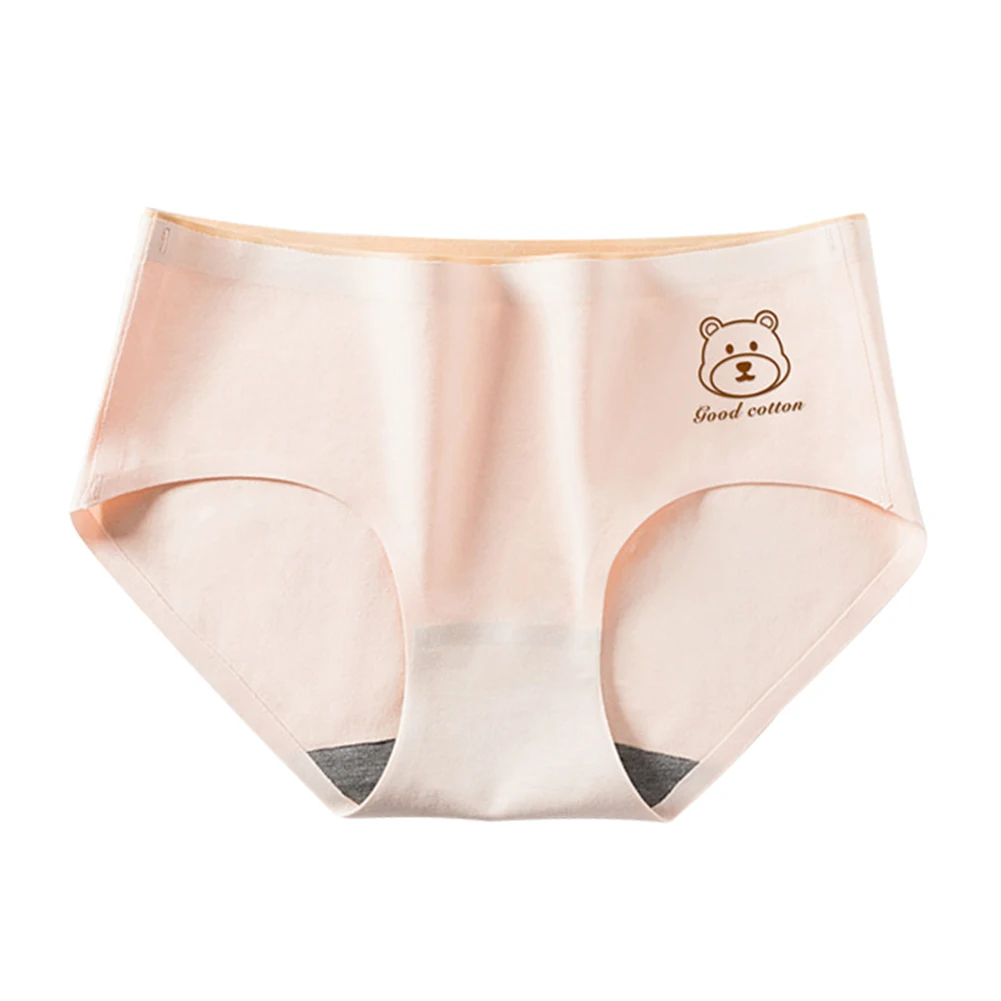Женский бесшовный рисунок с милым медведем, дышащее однотонное хлопковое белье, трусы