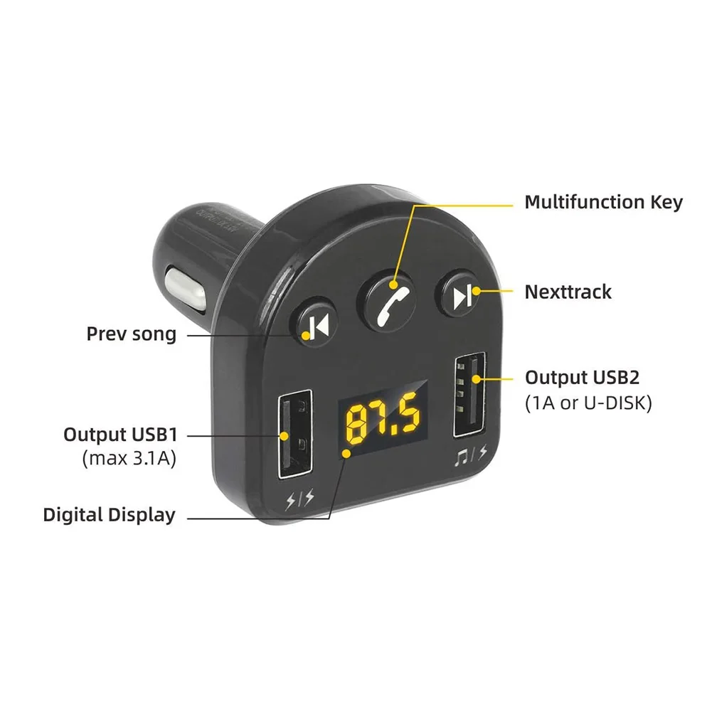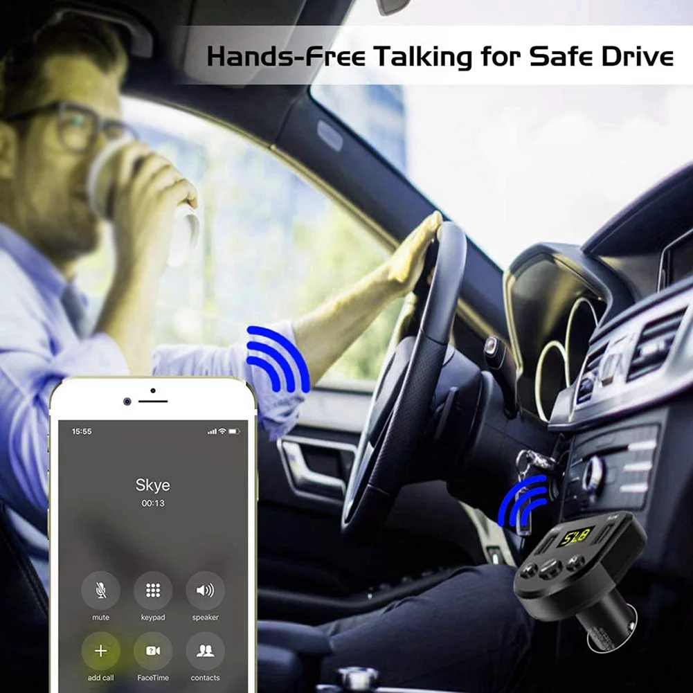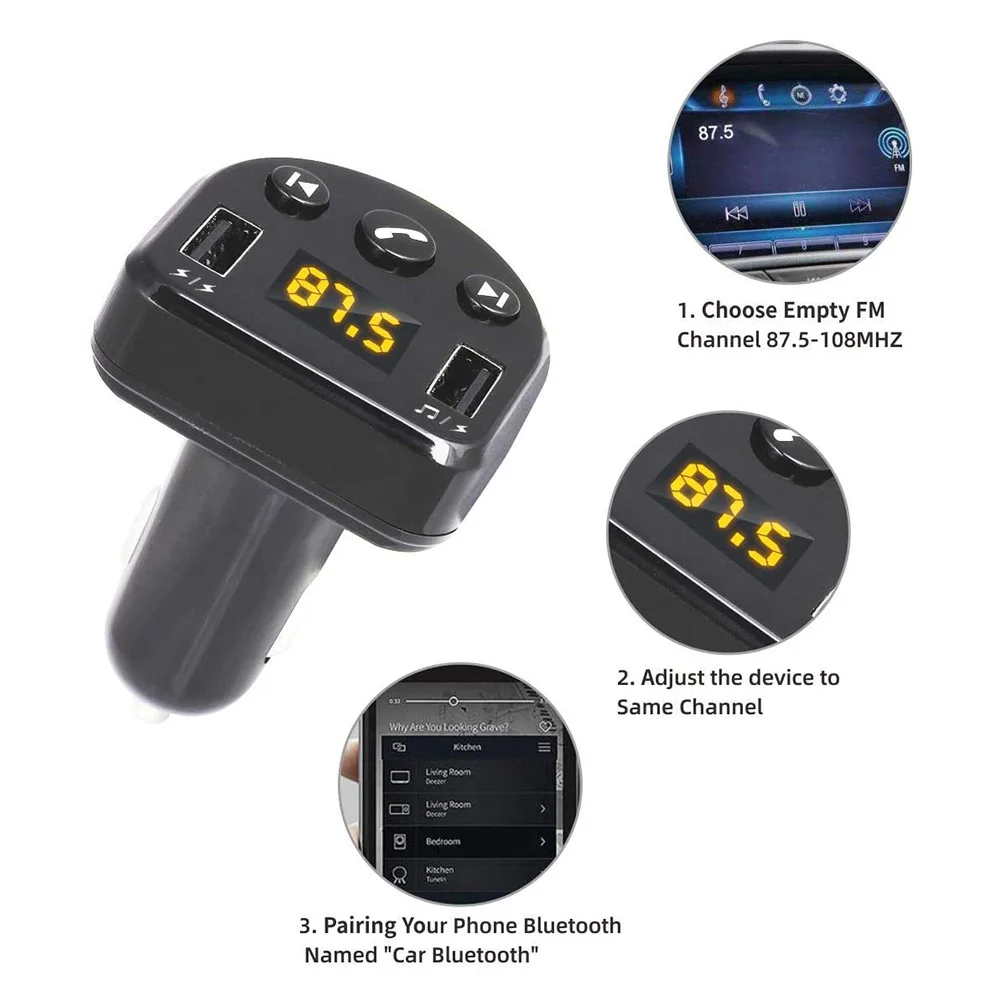 【Bluetooth fm-передатчик автомобильный Kit】: Bluetooth Автомобильный fm-передатчик может быть сопряжен как комплект громкой связи со всеми устройствами с поддержкой Bluetooth, транслируйте музыку и звонки непосредственно с ваших устройств Bluetooth на автомобильную стереосистему с помощью fm-радио-сигнала. Включите режим Bluetooth вашего смартфона и выполните поиск имени устройства «Car Bluetooth» для сопряжения. Вы услышите Быстрый тон при сопряжении succe.