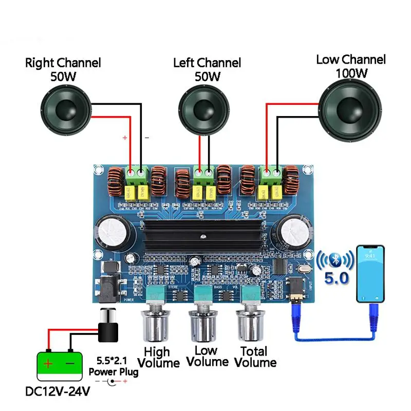 Выход мощность: 100 Вт + 2*50 Вт (4Ω)