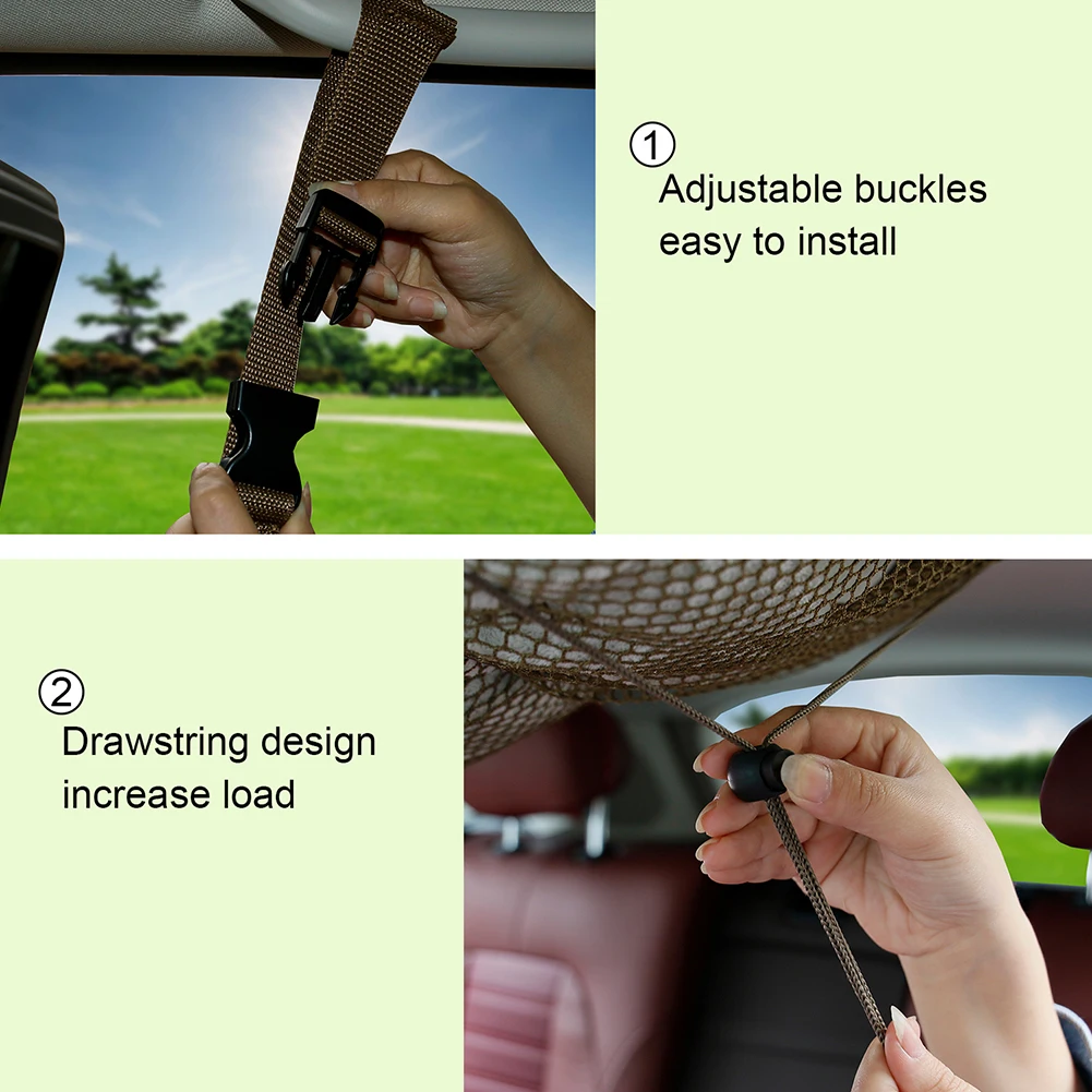 * 4. Грузовой карман имеет четыре крепежных пряжки, затягивающие устройства для безопасности автомобильного органайзера, вам просто нужно держать крепежные пряжки, затянуть ремень.