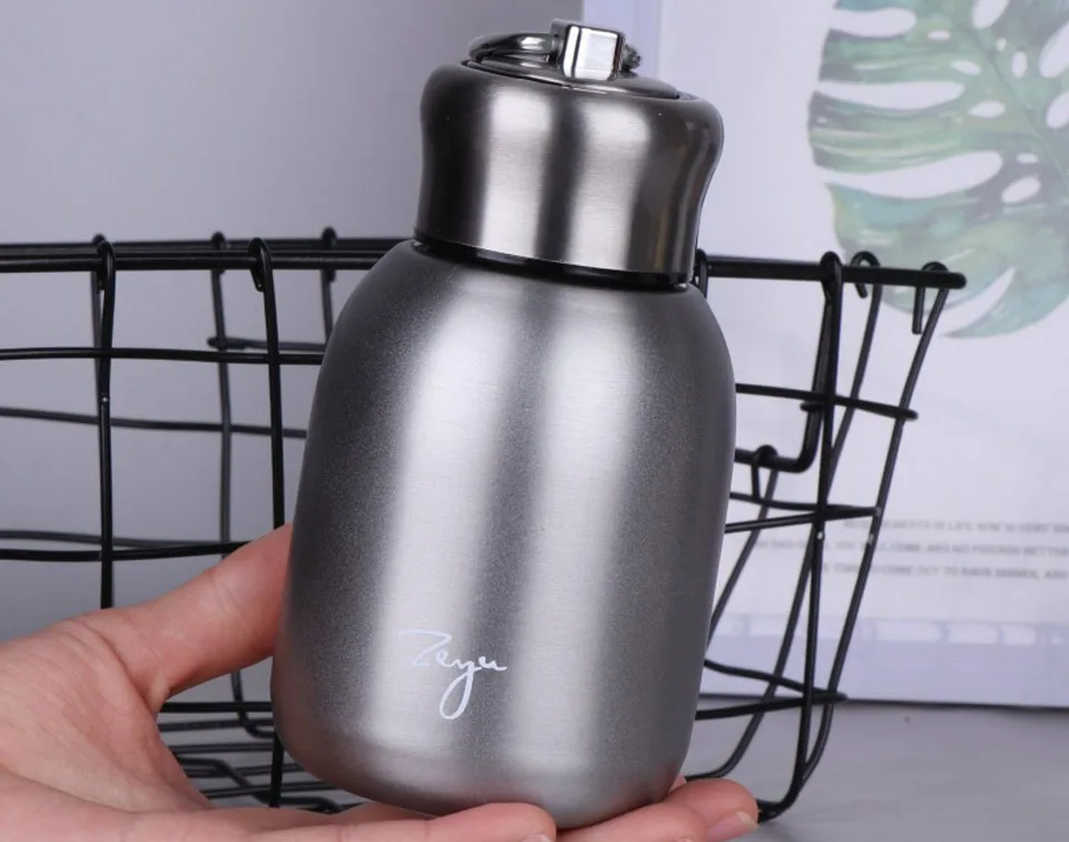 Номер товара: WB1217 Цвет: черный./зеленый/розовый/золотистый/серебристый Материал: нержавеющая сталь 304 + ПК + силикон Объем: 300 мл Размер: 13*7 см Время сохранения тепла: 6-12 ч Упаковка: упаковка коробки Диапазон использования: портативный мультяшный дизайн идеально подходит для детей