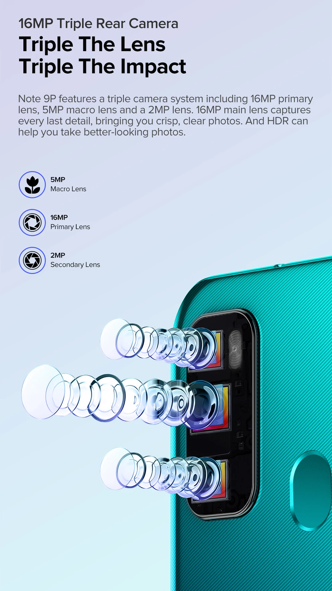 16MP(F/2,2) + 5MP макрообъектив + 2MP